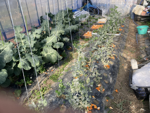 ソラマメに、花芽がつきました インクルーシブ 高知 2023年1月5日 ソラマメに、花芽がつきました2023-01-05T23:25:07+09:00 野菜の成長 昨年、10月中旬から植えていたソラマメに、花芽がつきました。品種は、一寸ソラマメです。ビニールハウス内の、南北の畝に植えているソラマメですが、一番南の株の成長が著しいです。ちなみに、ソラマメを植えている畝は、3年前ピーマン、2年前イチゴとタマネギを栽培し、今まで一度も耕すことなく使っています。 また、同じビニールハウスの中のプランターに植えているイチゴの花も、次第に数が増えてきました。 Related Posts ジャガイモの成長とブロッコリーとソラマメの植付けです ハウスブロッコリーの成長とタマネギの発芽不良について ハウス内のズッキーニとナスです
