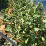 猛暑の中で、野菜たちも育っています。路地ナスは、誘引が遅れてやっと誘引できました。今年は、ある書籍からヒントをもらい、植付時に水苔を巻いて定植することで、まずまずの生育で収穫できています。